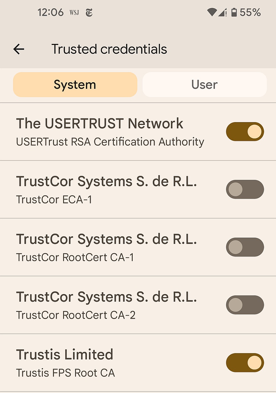 - May 13, 2025: Google’s Advanced Protection for Vulnerable Users Comes to Android by Lily Hay Newman for Wired. This is a free service. It sounds great in the article, but the author has not used it and thus not yet had to deal with passkey or security thingy to enroll in the system. One feature is device logging to the cloud (Intrusion Logging) where the logs are read-only and only available to the end user, not to Google or anyone else. Another feature tries to prevent buffer overflows, but exactly how is not explained. Trust us.