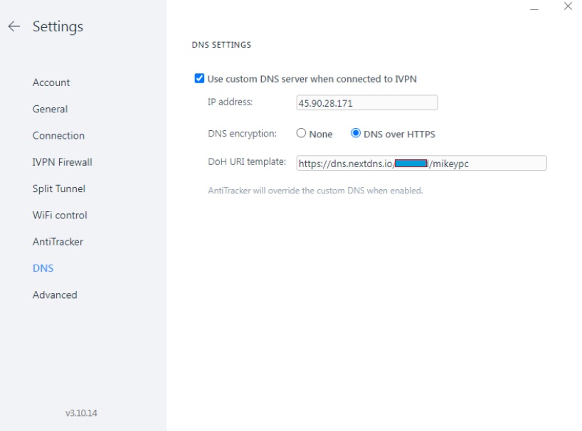 IVPN offers a DNS filtering option called AntiTracker. On the main screen of their Windows software it says that this feature "Blocks trackers whilst connected to VPN." Yet, the feature also blocks ads and malware. You would have to read the website description of the feature or dig into the detailed settings to learn this. The main screen of their iOS app, does not even say that it blocks trackers, it just says that it is on or off (in case the checkbox colors are not clear - and they are not). I lead with this point because it is typical of IVPN. The services they offer are quite good, their user interface does them, and you, no favors.