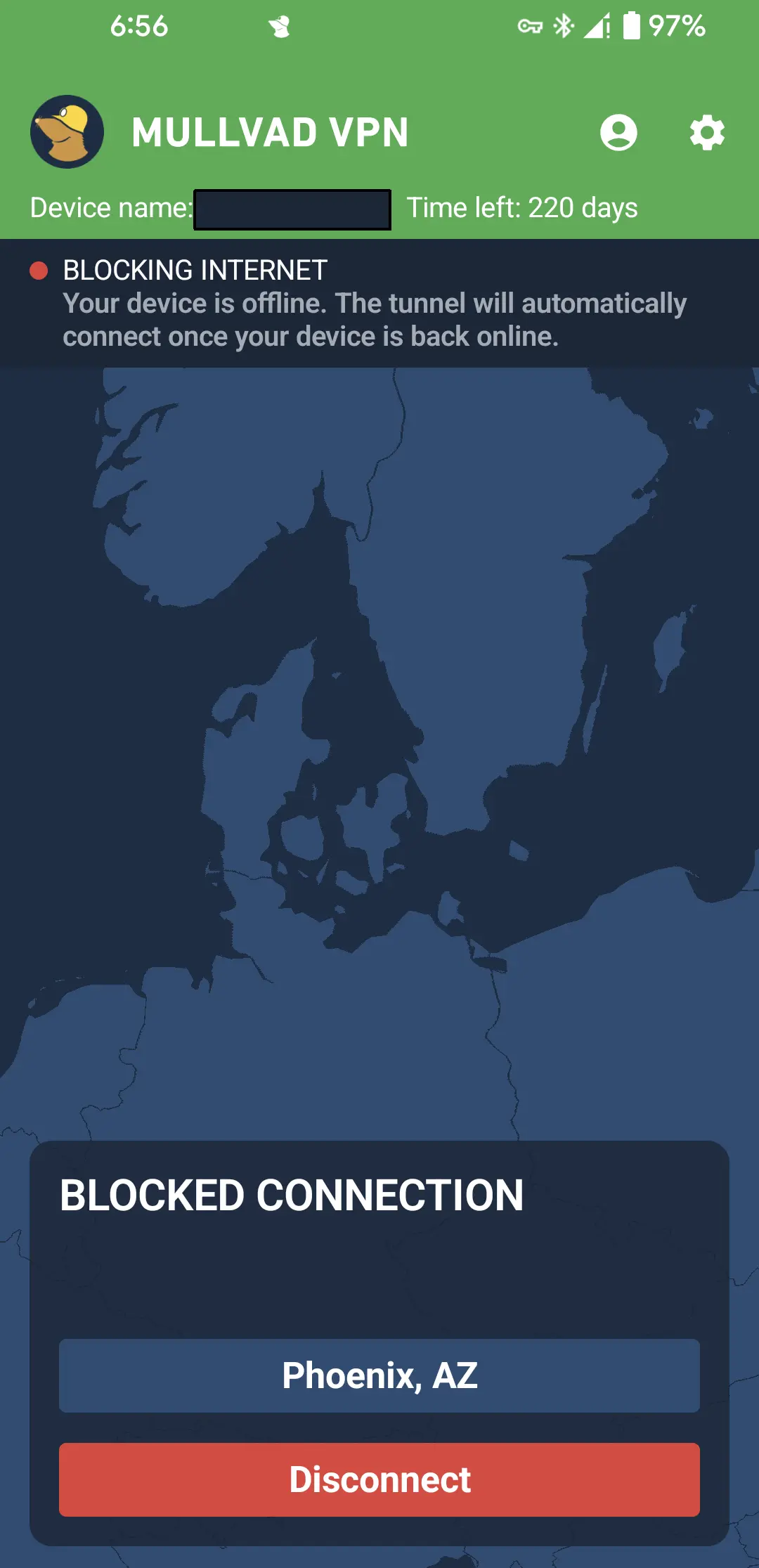 I suspect that having a limit on registered (again, my term) devices is a WireGuard thing as it says here that you can only have five Wireguard keys. What a key is, is apparently none of my business. Also, I have used Mullvad in the past and this was not an issue back when they used open source OpenVPN client software on mobile devices. If it is a WireGuard thing, then the Windows software should have asked if I wanted to use OpenVPN instead of de-registering (or whatever its called) another of my devices. It did not.