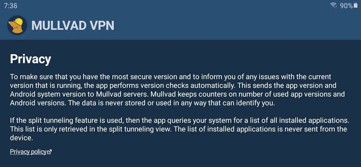 February 2023: I have the Mullvad Android software (v2022.3) installed on a Chromebook that I often use horizontally (landscape mode). The software can't handle that. Every time it runs, the screen is rotated sideways because the software can only run in portrait/vertical mode. It's getting pretty annoying.