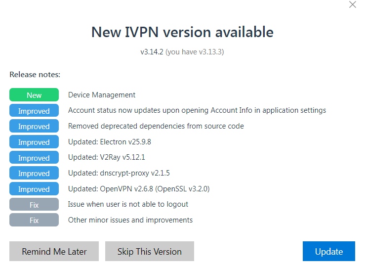 November 2024: iOS 17.7 and IVPN app version 2.12.4.