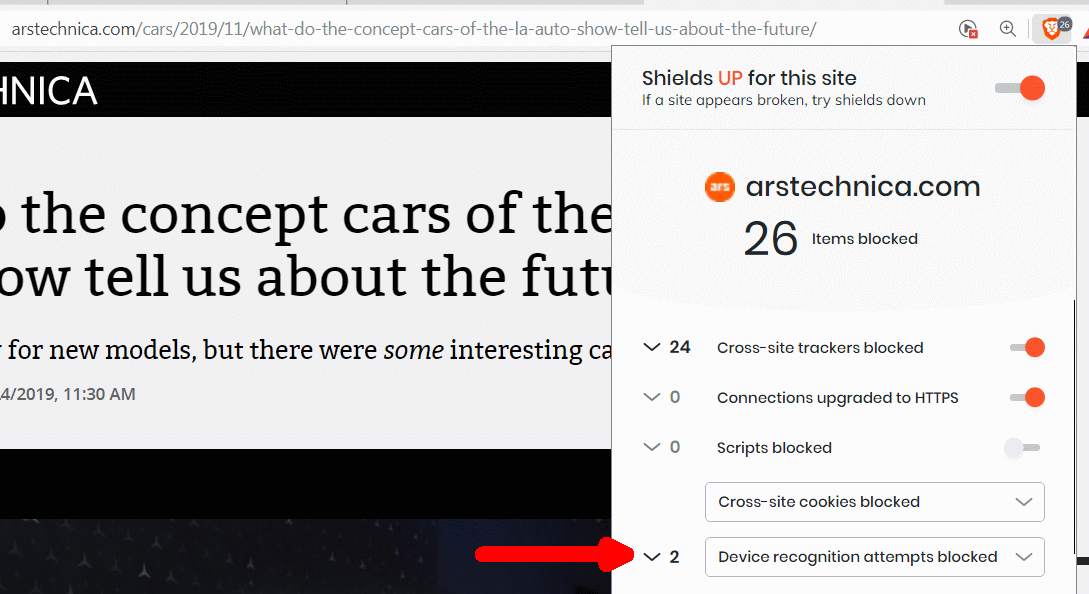 Their older defense was the Device Recognition option in the Settings. I found that it worked, here you can see it reporting that it blocked two fingerprint attempts by Ars Technica.