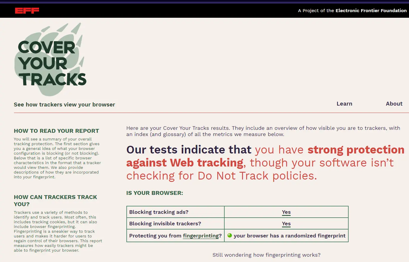 - Web browser fingerprinting - testing the testers by me Nov. 2019. How well do the above two tester websites work? Not as well as they could.